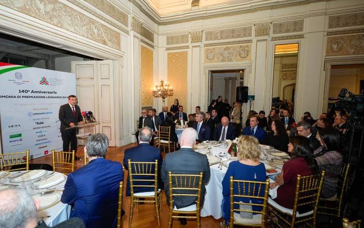 Burada konuşan Yılmaz, Leonardo da Vinci Ödül Töreni vesilesiyle İtalya ve Türkiye’den seçkin iş dünyası temsilcileriyle bir araya gelmekten büyük memnuniyet duyduğunu belirterek, Türk ve İtalyan şirketlerine verilen ödülü alan firmaları tebrik etti.
