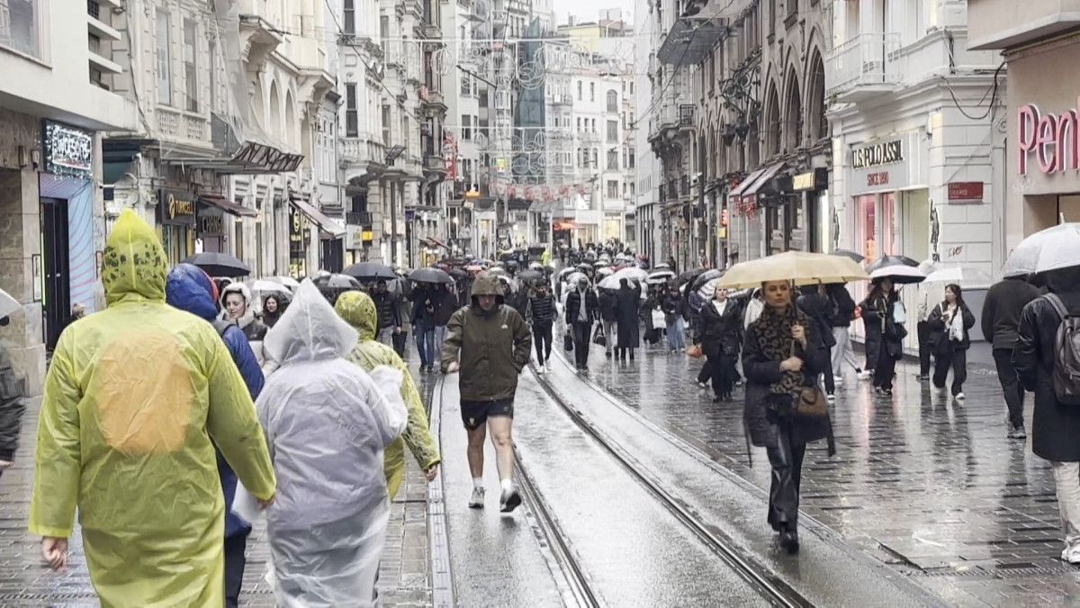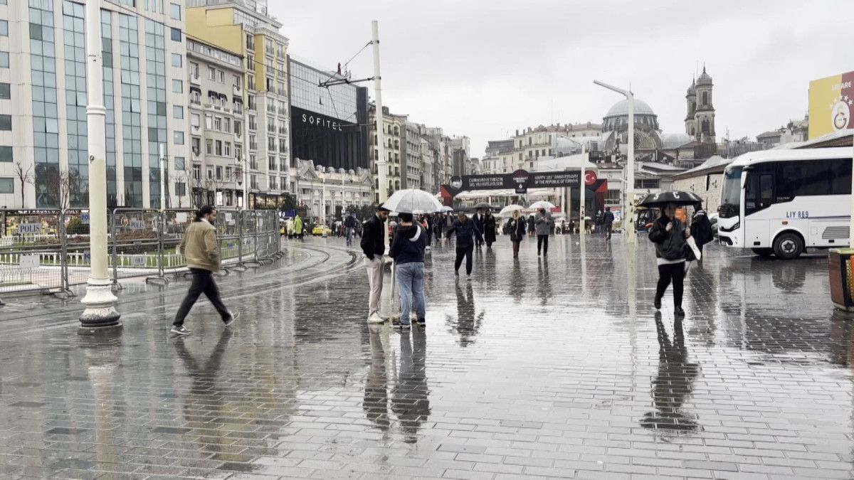 Sağanak sırasında bazı kişiler tramvay durağı ve kapalı alanlara sığınırken, bazıları ise yağmura aldırış etmeden yürümeyi sürdürdü.